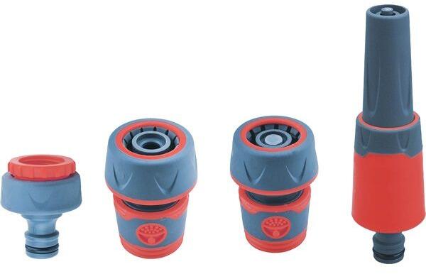 Extol locsoló alap szett, 1/2" tömlőhöz; 4 db (1db szórófej, 2 db gyorscsatlakozó, 1 db kuplung csatlakozó 1/2"-3/4") (8876490)
