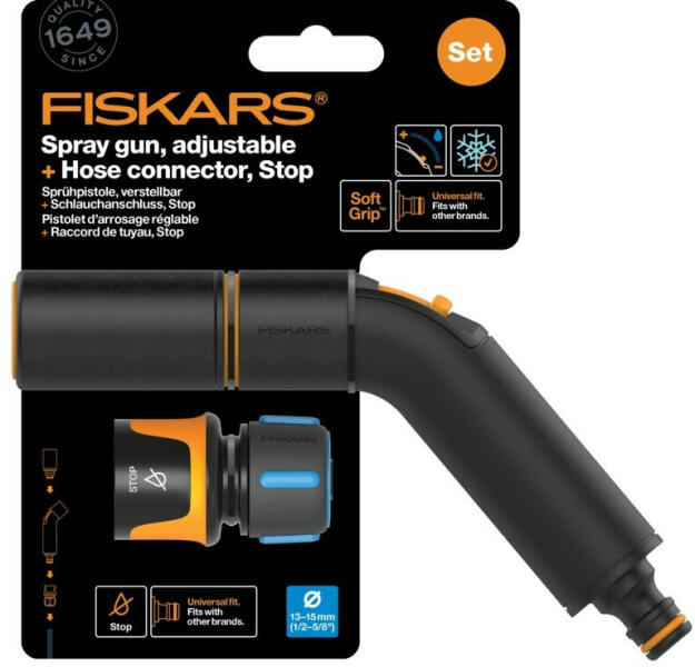 Fiskars Comfort locsolópisztoly, állítható fejjel + CF tömlőcsatlakozó 13-15mm (1057607)