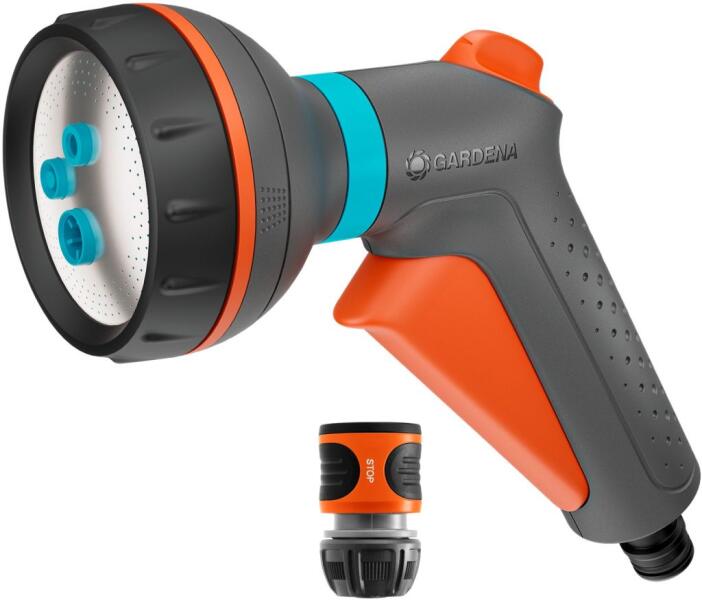 A GARDENA Classic Többfunkciós öntözőfej készlet vízmegállítóval négy sokoldalú vízsugárformával, UV- és alkalmi fagy elleni védelemmel rendelkezik a kertészeti szezonban; német minőség.